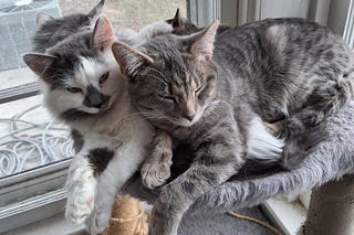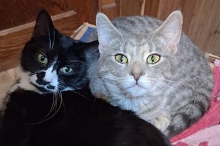 The gray and white fluffy twin boys.